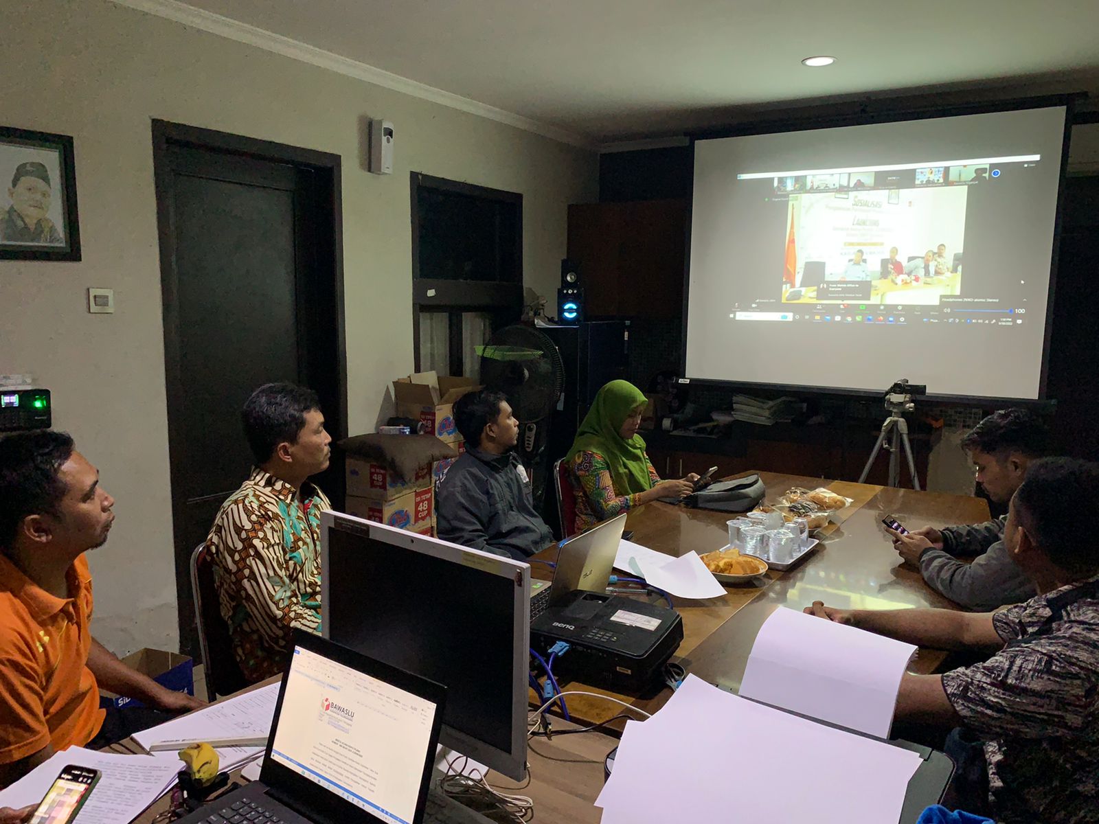 Anggota Bawaslu Tulungagung Endro Sunarko beserta perwakilan SKPP Kabupaten Tulungagung saat melaksanakan kegiatan zoom meeting lounching Gerwaslu